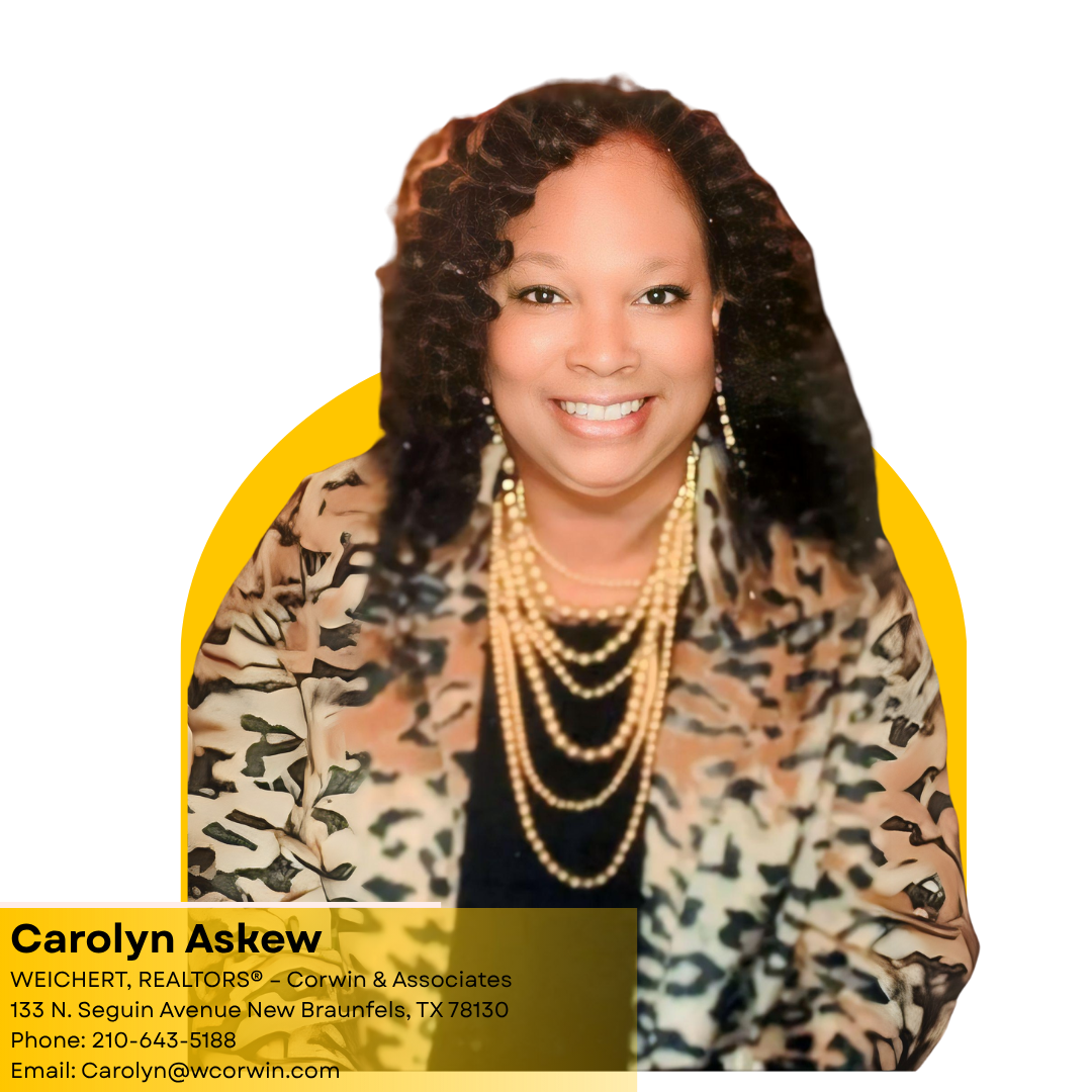 Greetings from Carolyn Askew, your next Real Estate Salesperson. I currently reside in Vintage Oak, New Braunfels, TX. I retired from the Department of Defense (DoD) after 32 years of Civilian Service. I was a Human Resources (HR) Specialist and DoD Instructor who traveled worldwide to conduct training. Also, I worked closely with the President of the United States reviewing the Executive Orders prior to him signing. Upon retiring, I was presented the Exceptional Civilian Service Medal, which is the highest award in recognition of exceptionally distinguished service and accomplishment with significant DoD scope and impact. I was honored.